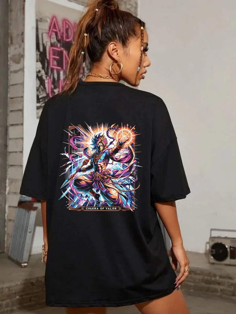 Unleash divine power and fearless energy with the “Chakra of Valor” oversized T-shirt. Inspired by the heroic essence of Lord Krishna and the mighty Sudarshan Chakra, this design symbolizes courage, righteousness, and the eternal victory of dharma over adharma. The vibrant anime-style artwork captures Krishna in a powerful stance, making this T-shirt a bold expression of strength and spiritual pride. Crafted from premium bio-washed French Terry cotton, this oversized drop-shoulder T-shirt delivers superior comfort with a relaxed, streetwear-inspired fit. Whether you're stepping out casually or making a statement, this piece blends tradition with modern anime aesthetics effortlessly.