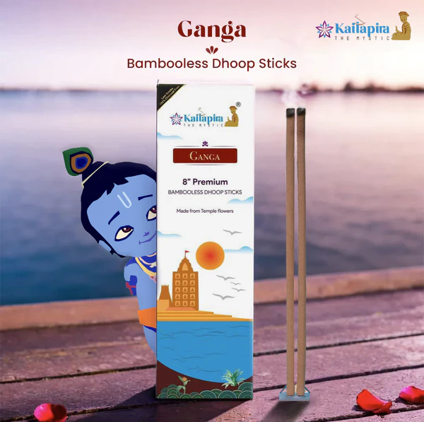 Invoke the divine purity of the holy Ganga River, revered in Hindu mythology as the Goddess of sanctity and cleansing, with the Ganga 8” Premium Bambooless Dhoop Batti. Handcrafted from temple flowers collected in the sacred hills of Uttarakhand, these incense sticks carry the natural essence of devotion and spiritual freshness. Each stick is hand-rolled with flower powders, fresh herbs, and pure essential oils, blended as per ancient wisdom. The fragrance is calming, restorative, and spiritually uplifting, designed to balance the mind, body, and soul. Crafted to be eco-friendly, bambooless, and 100% charcoal-free, these incense sticks not only enhance your puja rituals but also act as natural air purifiers, leaving your surroundings refreshed and serene. Perfect for daily prayer, meditation, yoga, or relaxation, they bring the blessings of the Ganga straight into your home.