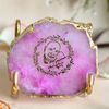 Bring divine blessings and positivity into your home with this Handcrafted Guru Jee Metal Holder featuring Natural Pink Agate Stone. Each slice of premium agate is unique in pattern, offering healing energy, spiritual protection, and elegant décor. The engraved Guru Jee portrait adds a powerful spiritual touch—perfect for pooja rooms, office desks, meditation spaces, gifting, and festive decorations. A beautiful combination of spirituality and luxury craftsmanship, making it an unforgettable keepsake.