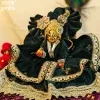Invite the serene grace of Shree Hari into your home mandir with the HariVilasa Laddu Gopal Velvet Dress, a divine emerald-green poshaak crafted to reflect prosperity, devotion, and timeless spiritual elegance. “HariVilasa” embodies the gentle joy and sacred presence of Lord Krishna—an expression of bhakti that adorns your Thakur Ji in hues of calm devotion and regal charm. Made from premium velvet fabric, this poshaak offers a luxuriously soft, plush feel without any bukram or stiff material. The smooth drape ensures your Laddu Gopal Ji remains comfortable throughout daily darshan, long pujas, and festive rituals. The deep green velvet is associated with renewal, balance, and abundance—symbolizing the nourishing grace of Krishna’s presence in the devotee’s life. Delicate borders and subtle embellishments add a soft festive shimmer, enhancing the beauty of your altar during aarti.
