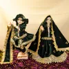 - Forest-green velvet Radha Krishna dress set