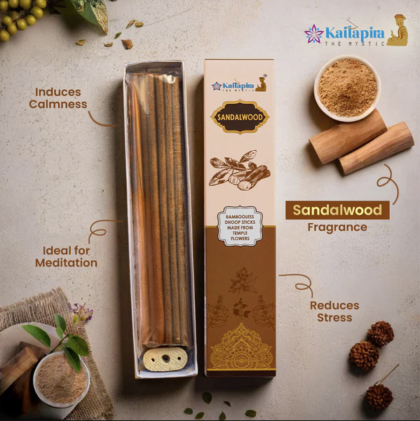 Kailapira Sandalwood Incense sticks – 8” Premium Dhoop Batti, Incense Sticks (Pack of 2) - 20 each
