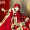 - Rich kumkum red velvet Radha Krishna dress set