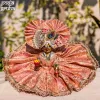 Illuminate your mandir with the soft radiance of the Laddu Gopal Dress Set. Inspired by the gentle glow of blooming lotus petals, this elegant shringar features a luxurious peach rose gold silk brocade that reflects warmth, purity, and divine grace. The subtle shimmer and floral brocade weave create a regal presence, making every darshan feel special and serene. Beautifully crafted for both Laddu Gopal (Bal Krishna), this poshak drapes gracefully and holds its pleated form, offering a refined, temple-ready look. The optional mukut (crown) for Laddu Gopal adds a festive, royal touch—perfect for Janmashtami, , festive pooja, wedding mandap decor, and daily darshan. This divine dress set brings a warm devotional glow to your home temple, elevating your daily worship with elegance and bhakti.