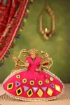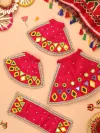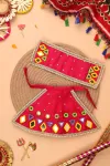 Adorn your home temple with the radiant Madhuro Magenta Lehenga Odhni, lovingly handcrafted by skilled Kutch artisans. This vibrant cotton ensemble, embellished with exquisite Kutch mirrorwork, captures the joyous spirit of Navratri Raas and invites Mata Rani’s divine blessings. The rich magenta hue symbolizes devotion and auspicious energy, while the delicate mirrors reflect a festive sparkle, making it perfect for daily worship or special celebrations. Complete with a matching lehenga and odhni, this 2-piece set brings elegance and reverence to every darshan.