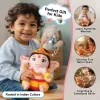 Introduce devotion in a cute and playful way with the 25 CM Mantra Chanting Baby Ganesha Plush Toy. This compact and adorable version of Bal Ganesha is perfect for kids and small pooja setups. With joyful detailing like a Modak in hand, sacred tilak, and crown, this plush toy chants soothing Ganesha mantras that bring positivity and happiness to your space. Key Features: Compact 25 CM Size – Travel & Kid Friendly – Easy to carry, place on study table, pooja shelf, or nursery corner. Plays 3 Calming Ganesha Mantras – Helps kids connect with devotion while creating a peaceful atmosphere. Soft, Safe & Huggable Plush Fabric – Made with premium polyfiber filling for a cuddly feel. Symbolic Design for Spiritual Learning – Features Modak, blessing hand posture, and Ganesha tilak for recognition. Perfect Gift for Kids & Devotional Moments – Ideal for Ganesh Chaturthi gifting, return gifts, pooja décor, and cultural learning.