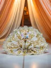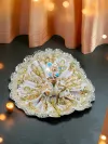 Celebrate the sacred spirit of Navratri with this graceful Navratri Shwet White Divya Poshak with Mukut, designed to bring purity, elegance, and divine charm to your Laddu Gopal Ji. The serene white color symbolizes peace, devotion, and spiritual clarity—perfect for auspicious occasions. Crafted with premium fabric, this poshak is adorned with intricate golden embroidery and delicate embellishments, creating a soft yet radiant look. The shimmering patterns enhance the beauty of your deity, while the matching mukut completes the divine shringar. Ideal for Navratri celebrations, daily darshan, or special puja, this poshak reflects traditional craftsmanship from Mathura. A perfect blend of simplicity and elegance to make your Thakur Ji shine with divine grace.