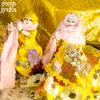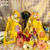 - Bright yellow floral Radha Krishna dress set inspired by Vrindavan gardens
