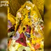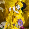 Infuse your mandir with the warmth of spring and the joy of divine love with the Pushpa Vastra Radha Krishna Dress Set in radiant yellow. Inspired by Vrindavan’s blooming gardens, this floral shringar brings a fresh, celebratory aura to Radha-Krishna darshan. The vibrant yellow base symbolizes auspiciousness, happiness, and spiritual renewal—perfect for uplifting your daily pooja and festive décor. This coordinated Radha Krishna poshak set features richly embroidered floral net fabric adorned with colorful blossom motifs, creating a lively, garden-like elegance around the divine couple. The soft net drape flows naturally (no bukram or stiff material used), giving Radha Rani’s lehenga and Krishna Ji’s dhoti a graceful fall that looks devotional and refined. The matching chunri/shawl and pagdi cloth complete the look with harmony and balance.