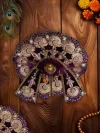 Adorn your Thakur Ji with divine royalty using this Rajsi Rachna Purple Velvet 3 Pc Fancy Poshak, crafted to reflect elegance, devotion, and timeless beauty. Made from rich velvet fabric, this poshak offers a soft, luxurious feel while enhancing the divine aura of Laddu Gopal Ji. The deep purple shade symbolizes spirituality, peace, and regal charm, making it an ideal choice for both daily darshan and festive shringar. This beautifully designed 3-piece set includes a flared velvet base, a matching choli, and a patka, creating a complete traditional ensemble. Intricate embroidery, zari work, and fine detailing add a majestic touch, giving your Thakur Ji a royal and graceful look. Perfect for Janmashtami, temple rituals, and special occasions, this handcrafted poshak reflects the devotion and craftsmanship of traditional temple attire.