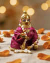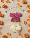 Adorn your beloved Thakur Ji with timeless elegance through the Shyam Ratnashringar Dhoti Kurta Dress for Laddu Gopal Ji, a graceful expression of royal Braj shringar. Designed to reflect the divine charm and serenity of Lord Krishna, this poshak beautifully blends tradition with festive richness. The outfit features a luxurious rani pink brocade kurta adorned with delicate golden floral patterns, radiating regal beauty and devotion. Paired with a classic cream dhoti, it creates a harmonious contrast that enhances the divine aura of Laddu Gopal Ji. The intricate detailing and fine craftsmanship make this ensemble perfect for both daily seva and special celebrations. Handcrafted with devotion in Mathura, this dress embodies the sacred artistry of Braj and adds a touch of elegance to your temple or home altar.